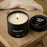 - U crnoj limenci koju možete reciklirati ili ponovno upotrijebiti. Također ima i poklopac, kako biste očuvali miris svijeće kada ona ne gori.