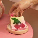 Nadahnuti neodoljivim receptima za japanske sendviče s jagodama (ali i s trešnjama), donosimo čvrsti i voćni sapun koji će vašu kožu ostaviti mekanom i mirisnom. Svaka jezgra napravljena je ručno, a zatim prekrivena našom divnom sapunskom bazom za obilje voćne pjene.